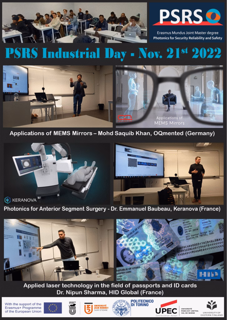 PSRS Industrial Day in Saint-Etienne: Another fascinating day with groundbreaking industrial leaders in the photonics industry. Many thanks to Drs. E. Baubeau from Keranova and N. Sharma from HID Global CID for their captivating presentations, and special thanks to PSRS alumnus M.S. Khan, R&D Engineer at OQmented, for his presentation on MEMS and for also sharing valuable advice on looking for internships, landing a job, and employer expectations!