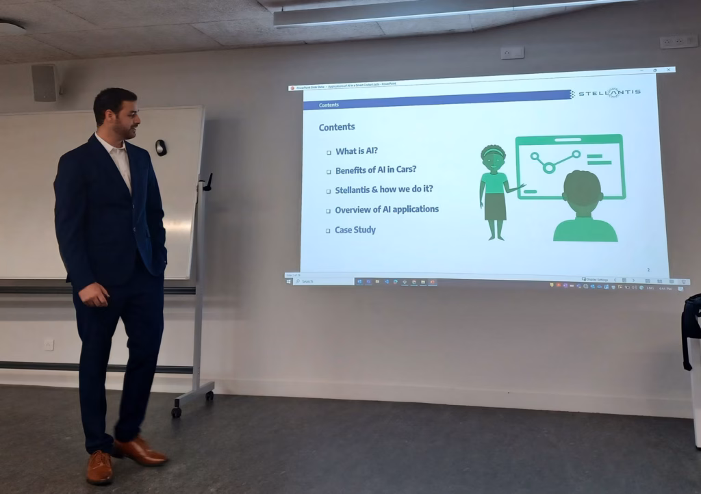 Mohammad Moazam, a graduate of the EMJMD PSRS in 2022 working at Stellantis, showcased how AI combined with photonic and acoustic sensors could assist in driving and make cars safer. A step toward the autonomous cars that could open the way to more car sharing.
