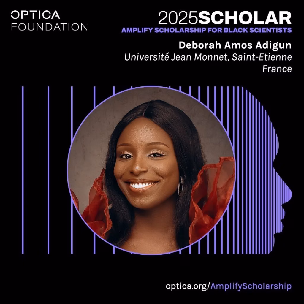 Déborah (cohort 2023-2025) has been awarded the prestigious Amplify Fellowship from the Optica Foundation (USA), a program dedicated to promoting the representation of Black scientists in the fields of optics and photonics.